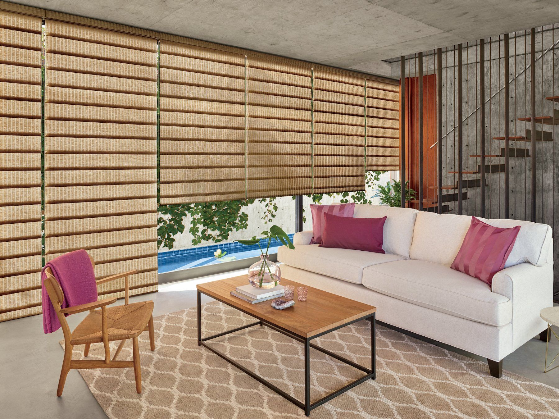 Luxurious fabrics and soft folds give Vignette® Modern Roman Shades a clean, crisp look with the added benefit of no exposed rear cords for improved window aesthetics and enhanced child safety.